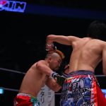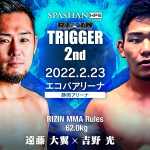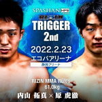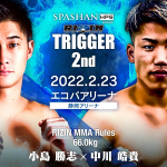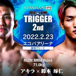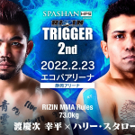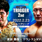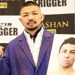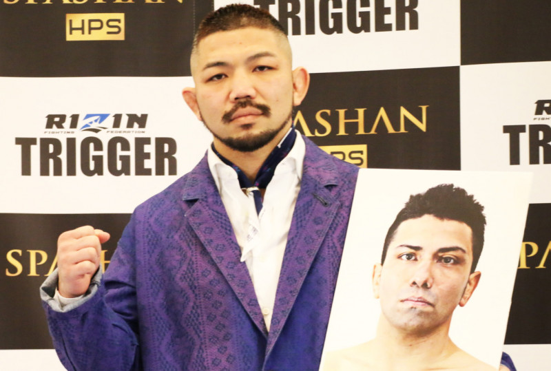 再起を誓うラウェイ世界王者の渡慶次幸平。対戦相手スタローンの顔写真を抱える