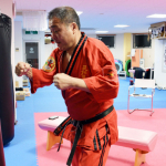 60人組手相手で登場する"キックの神様"こと藤原敏男(左)