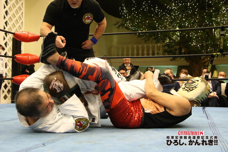 藤原がタイガーマスクで関節技