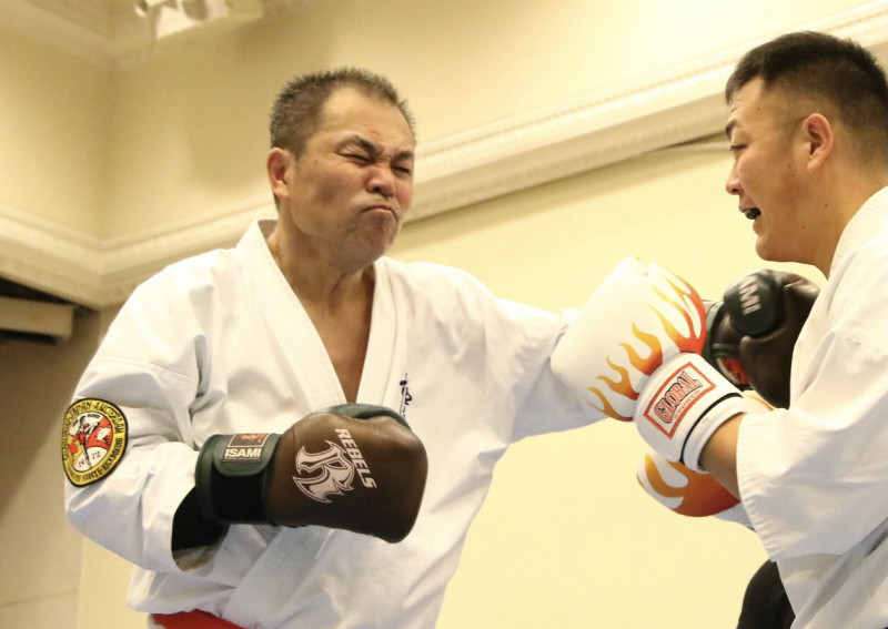 極真4連覇の藤井将貴(右)と打ち合う60歳・相澤