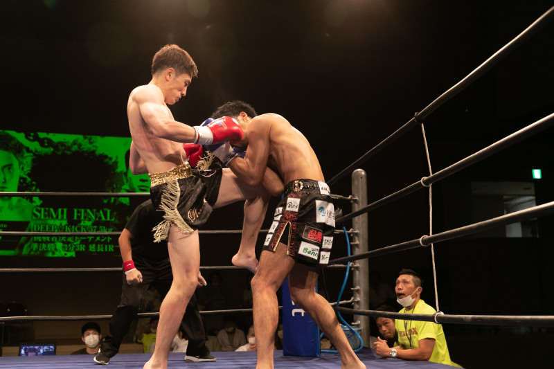 ヒザ蹴りを突き上げる宮崎