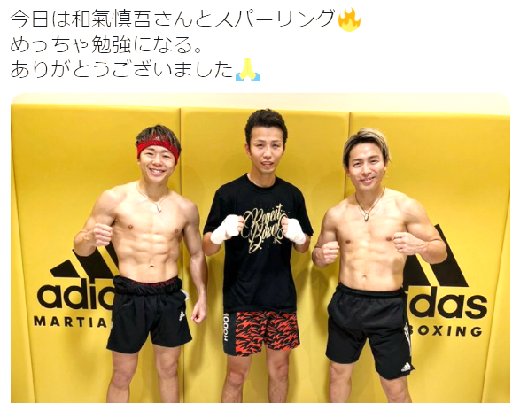 武尊は、自身のTwitterで和気とスパーリングしたことを報告した(武尊Twitterより)
