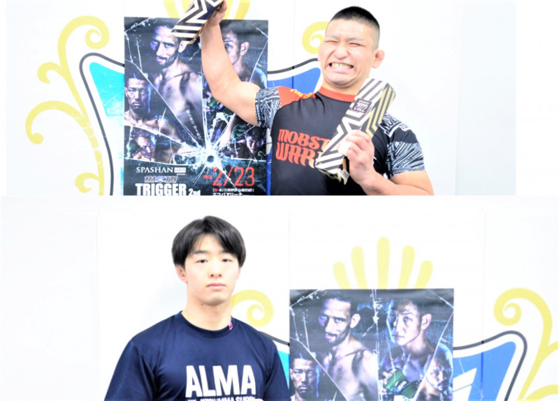 RIZIN TRIGGERに参戦するアキラ(上)と原虎徹が練習を公開