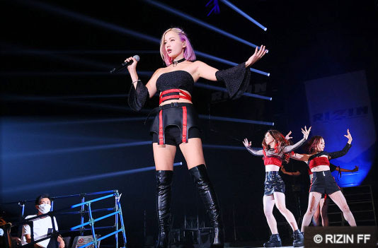 ミニスカ衣装で歌うサラ夫人=21年9月