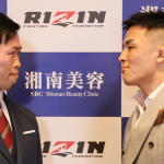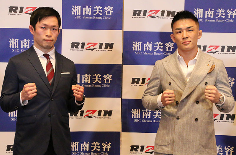 会見に出席した弥益ドミネーター聡志(左)と萩原京平