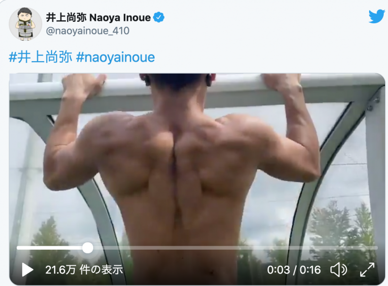 懸垂で凄い背筋を見せる井上尚弥(20年8月)井上尚弥Twitterより