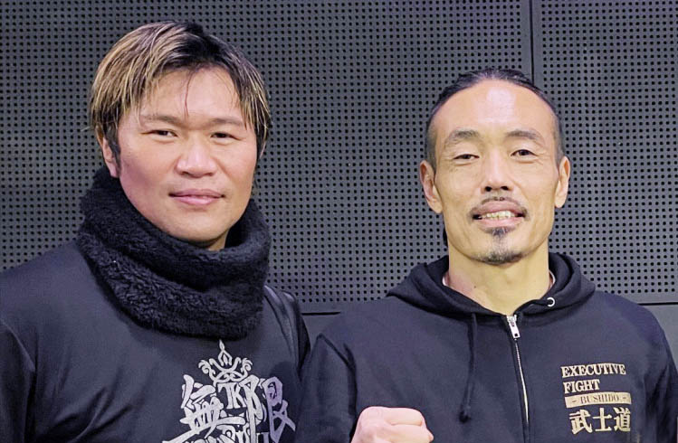 KO勝利後、安彦(右)はセコンドについた小比類巻貴之(左)とツーショット