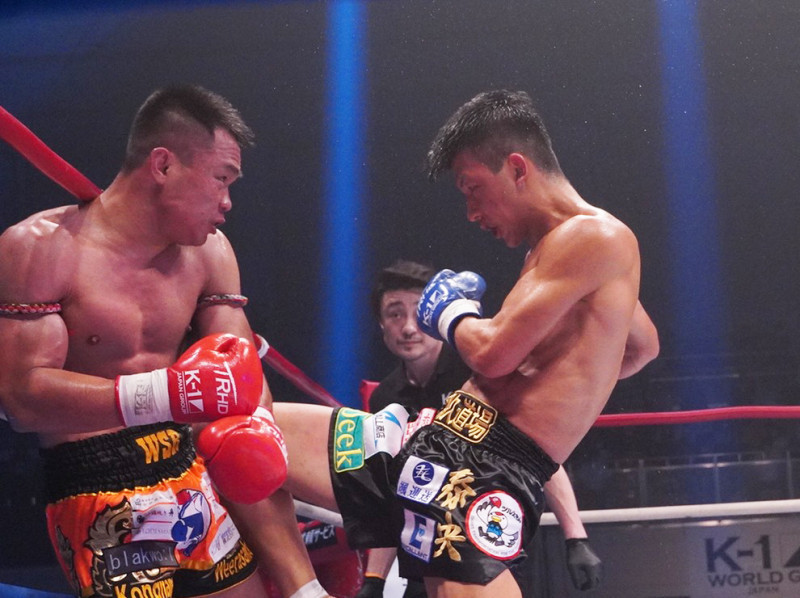ゴンナパーへヒザ蹴りを見舞う朝久