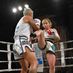 昨年12月に初王座を手にした奥脇の右前蹴り