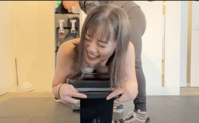 ハムストリングスに苦しむ長野(長野じゅりあYouTubeより)
