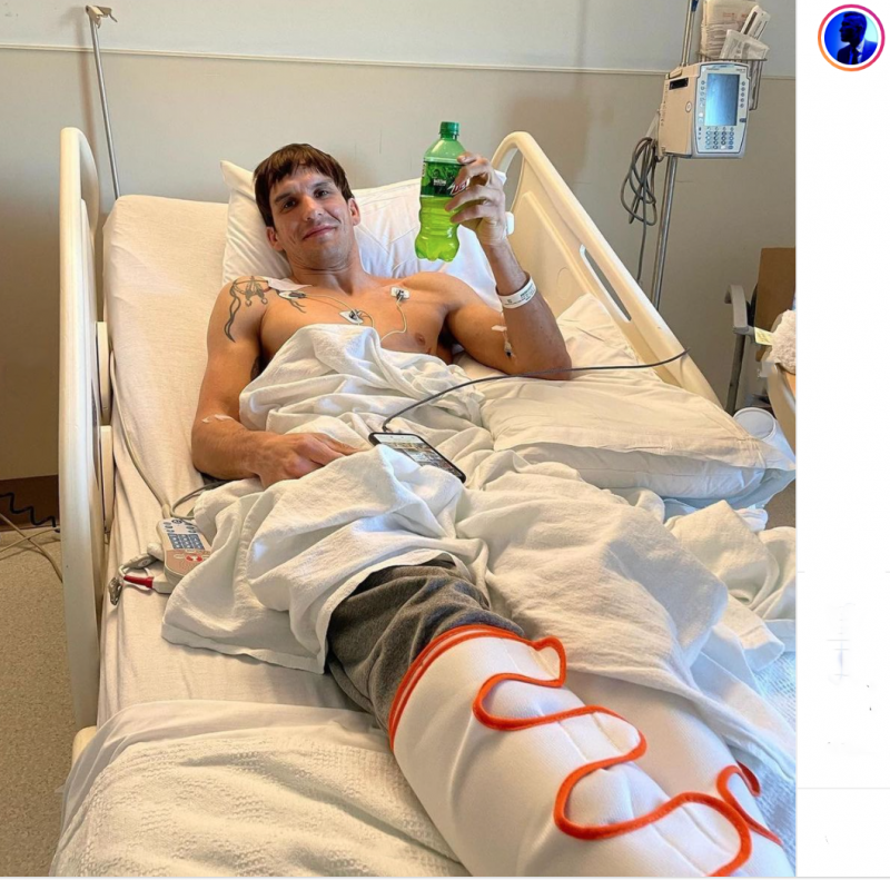 病室で笑顔ながらも痛々しい姿のレンカウンター@blackeagle_170より