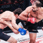 カカトがしっかりと脇腹に突き刺さっている©️Bellator