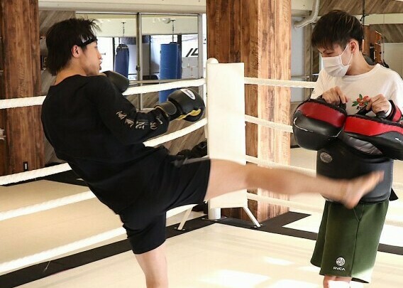 ミドルを叩き込む金子