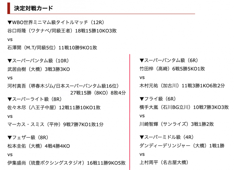 今大会(4.22後楽園)対戦カード
