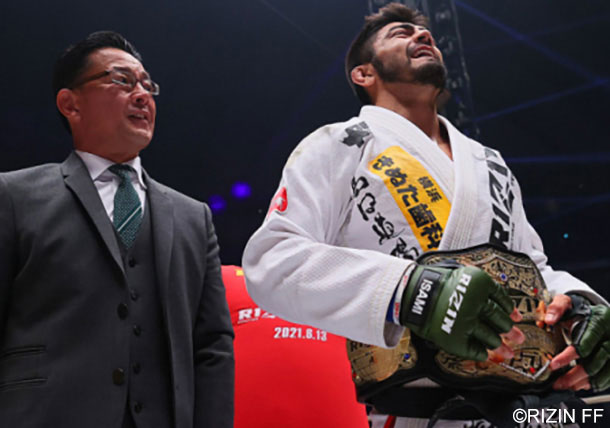 王座を戴冠し感激する様子のサトシ。押し寄せる海外勢からこのベルトを守ことはできるのか。