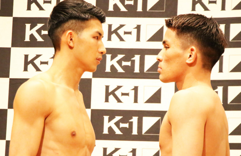 フェイスオフで、朝久(左)が与座を睨みつける!