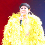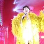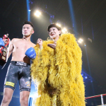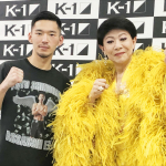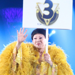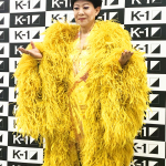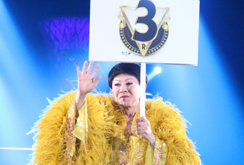 プラカードを持ち、ラウンドガールならぬラウンドスターデビューした美川