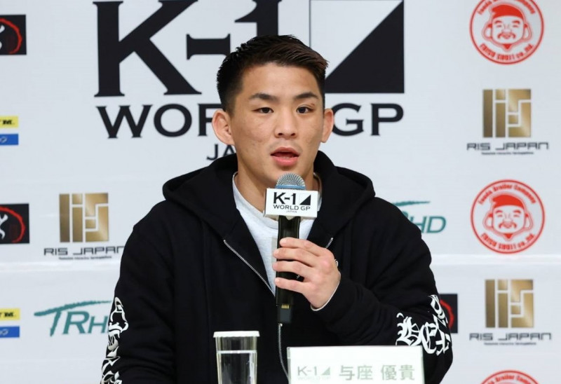 会見でコメントする与座(C)K-1