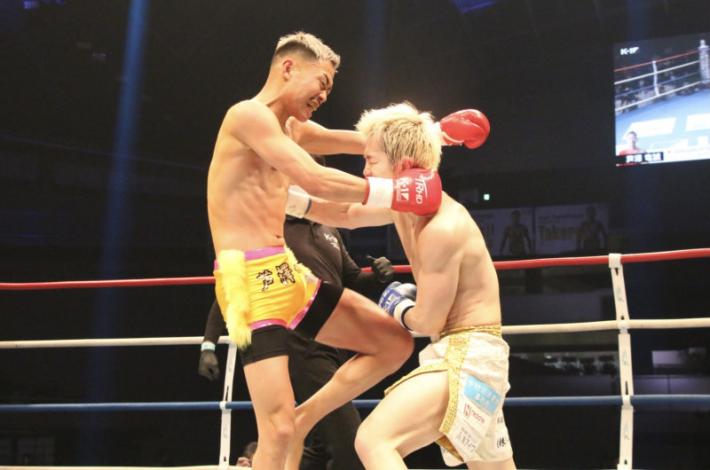 芦澤のヒザ蹴りで西元が崩れ落ちる瞬間
