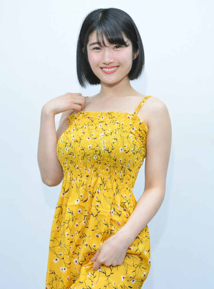 インタビューでの浅海、黄色いワンピースで答えてくれた