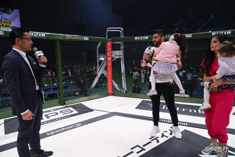 家族をリングへ上げてタイトル挑戦をアピールしたサトシ