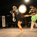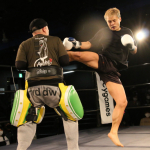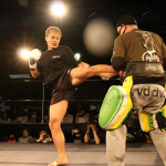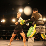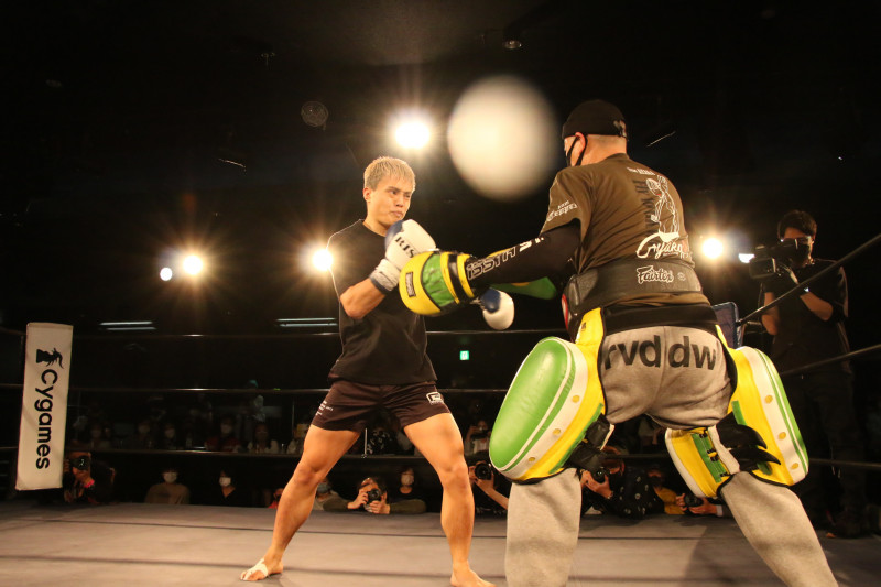 パンチと蹴りのコンビネーションを披露