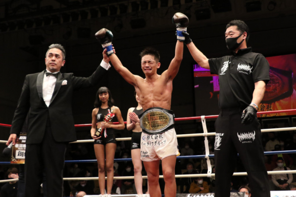 REBELS-REDスーパーフライ級王座を手にした白幡(2021年2月)