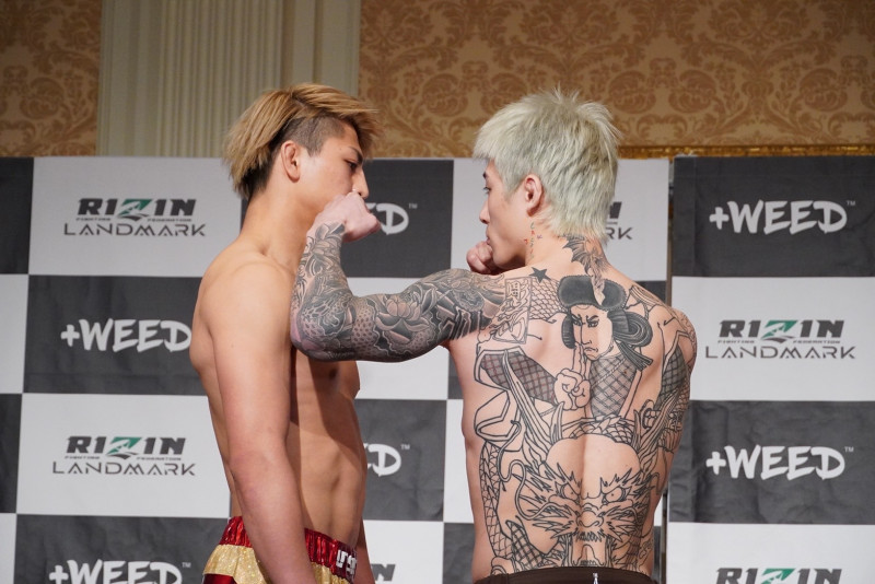 平本が鈴木の顔面に自身の左拳を近づけ、バチバチのフェイスオフを展開