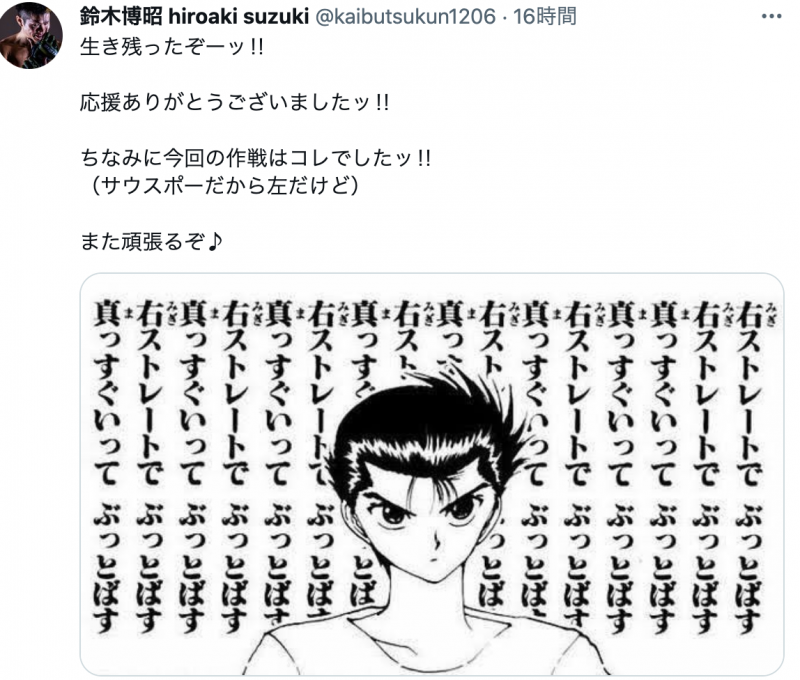 鈴木が試合後ツイッターで投稿。@kaibutsukun1206より