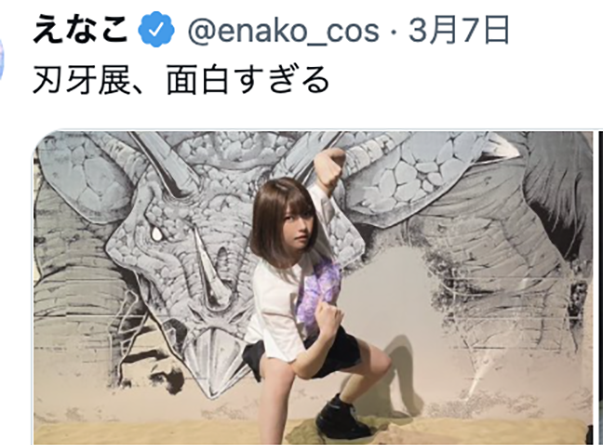 えなこがトリケラトプス拳で決めポーズ(えなこTWitterより)