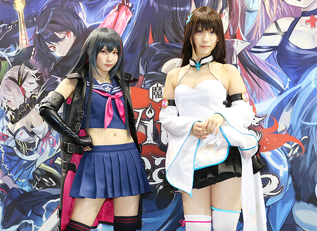えなこのコスプレ撮影(右は伊織もえ)