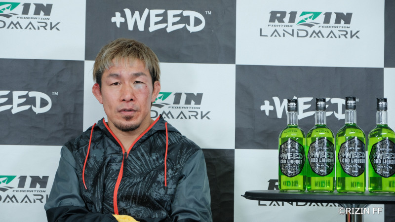 試合後の会見、傷だらけの顔で登場した昇侍©️RIZIN