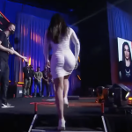 アヴサラゴワがフィニッシュとなる右ストレートを決めた瞬間©️Bellator