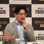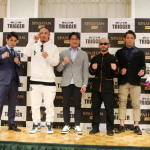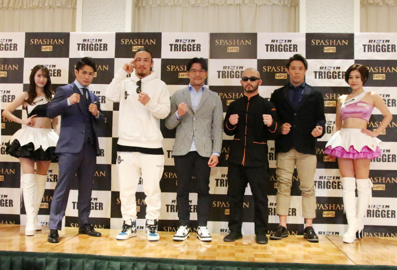 会見に登壇した選手たちとRIZIN榊原代表、RIZINガール