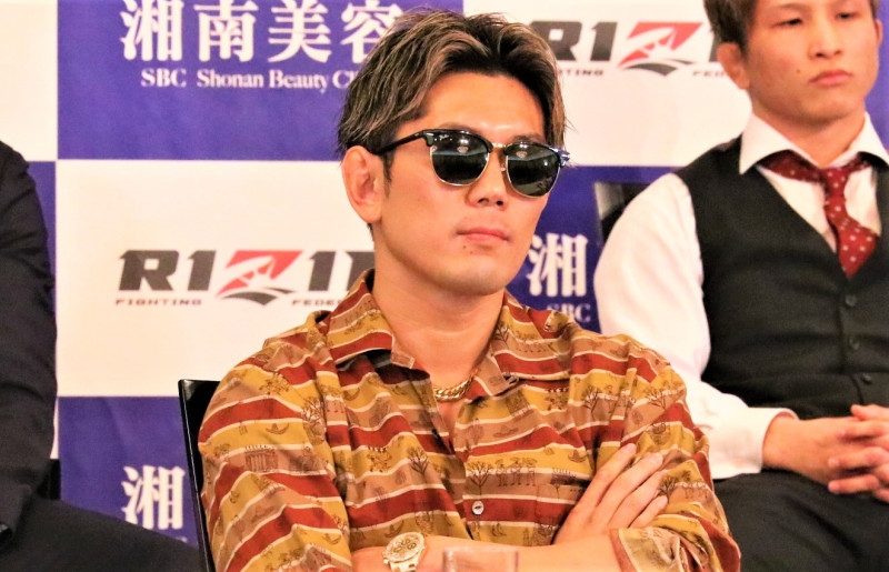 梅野との再戦発表記者会見で皇治は、一瞬だけかぶっていたお面をとった