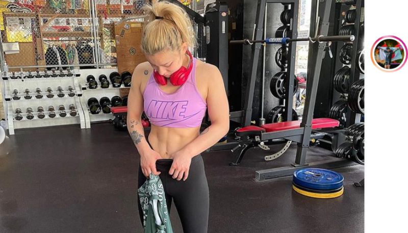 隆起した美しい腹筋を披露する平田@_itsuki_h_より