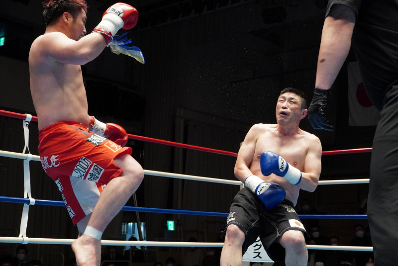 中川が意識を刈り取られ、ダウンする瞬間