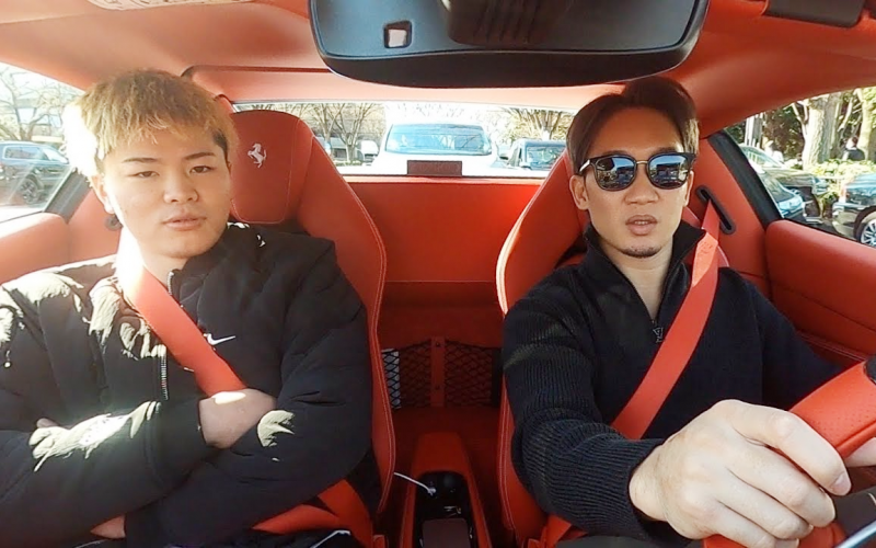 以前の対談では、朝倉の愛車フェラーリでドライブしながら那須川と武尊への秘策を語った(朝倉未来YouTubeサムネイルより)