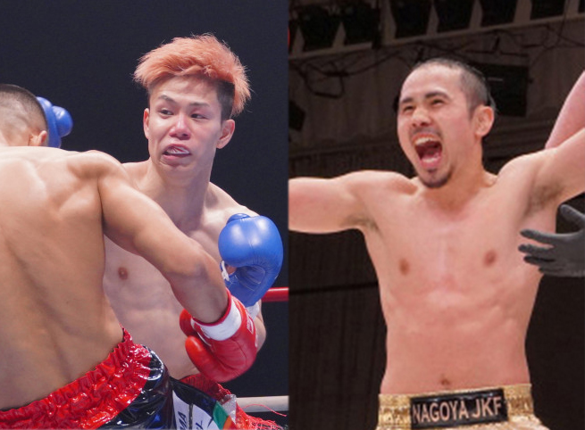 元K-1王者の椿原(左)と現役Krush王者・新美(右)が対戦する