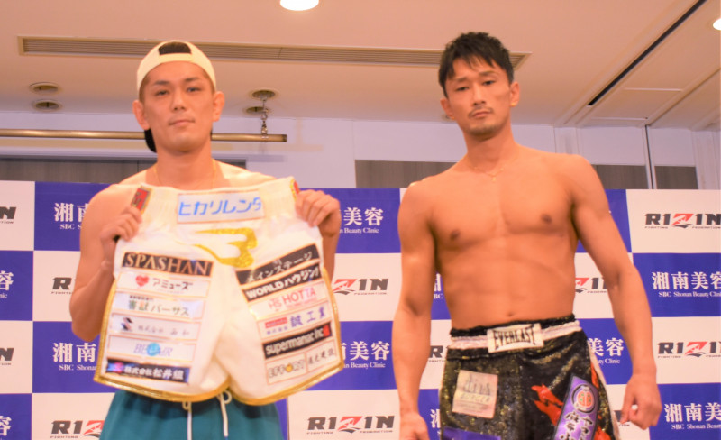 皇治はトランクスを手に計量に臨み、フェイスオフでは顔を隠した