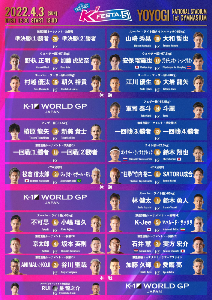 4月3日『K’FESTA.5』の全試合順