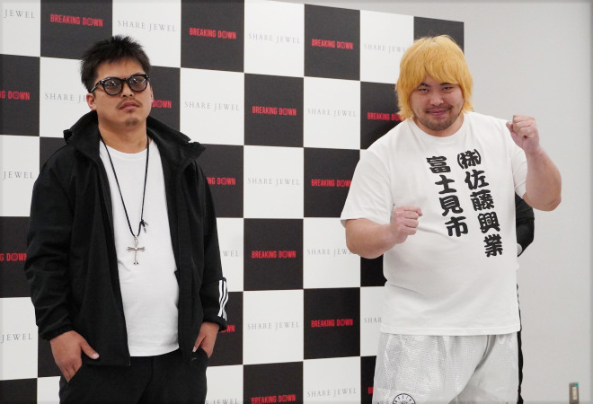 体重差は何と47kg!128.3kgのへずま(右)、81.35kgの安保君チャンネルの喧嘩自慢・てるが並ぶ