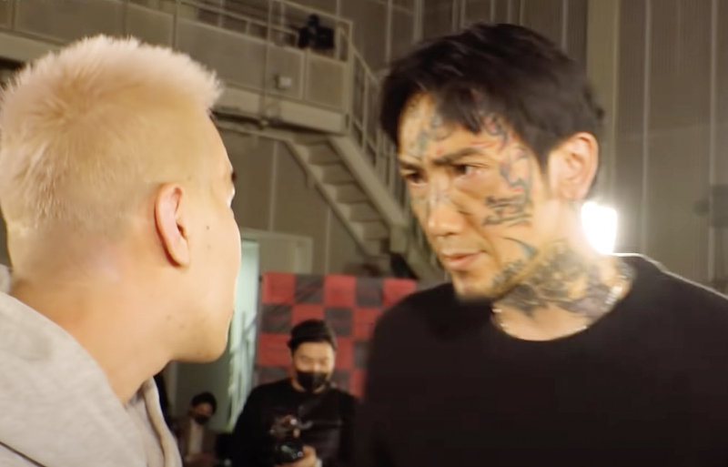 瓜田(右)は、オーディションに参加していたこめおと乱闘寸前までいく言い合いに発展していた(朝倉未来Youtubeより)