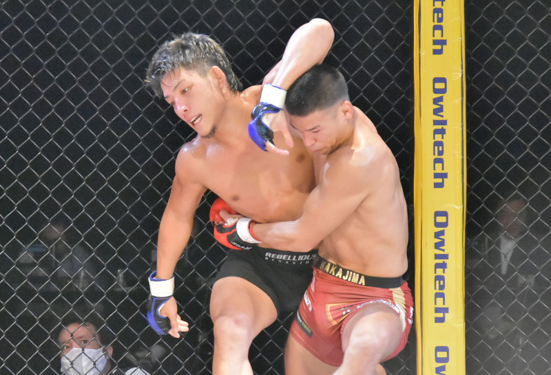 RIZINに一足先に参戦した堀江圭功(左)を破った中島(右)