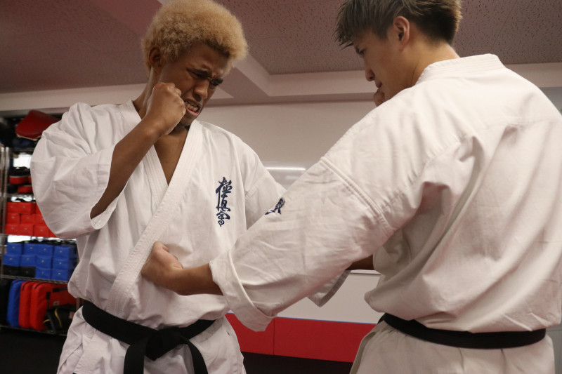 極真空手の打たせ稽古を披露。南原のボディにベイノアも悶絶©️RISE