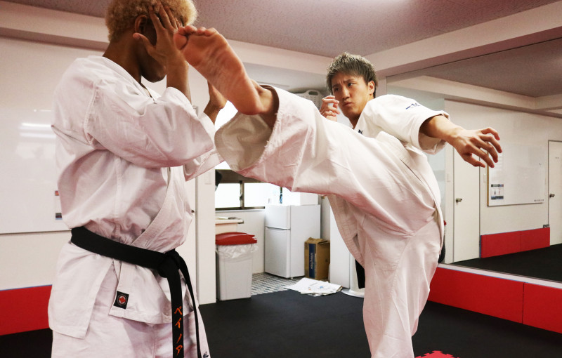 ベイノアを相手に左上段回し蹴りを放つ南原©️RISE
