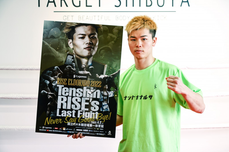 大会ポスターを片手にポーズを決める那須川。RISEラストファイトで、どんな姿を見せてくれるのだろうか(C)RISE