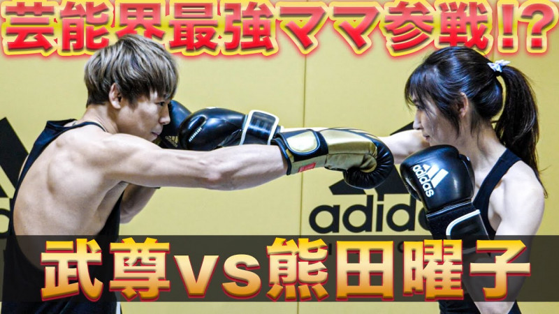武尊(左)と熊田曜子がスパーリングを行った(武尊YouTubeチャンネルサムネイルより)