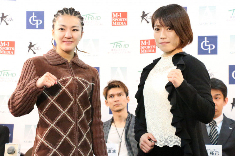 会見で並ぶ2人。会場が華やかになった