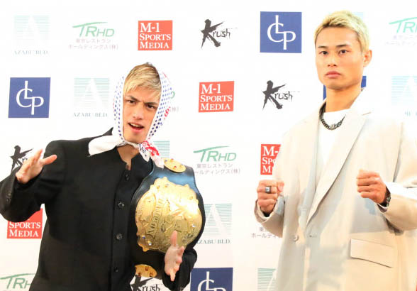 壬生狼(左)はダチョウ俱楽部から習ったリアクション芸をリング外で使うと宣言。池田は自分を貫いた
